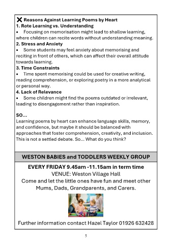 WESTON BABIES and TODDLERS WEEKLY GROUP